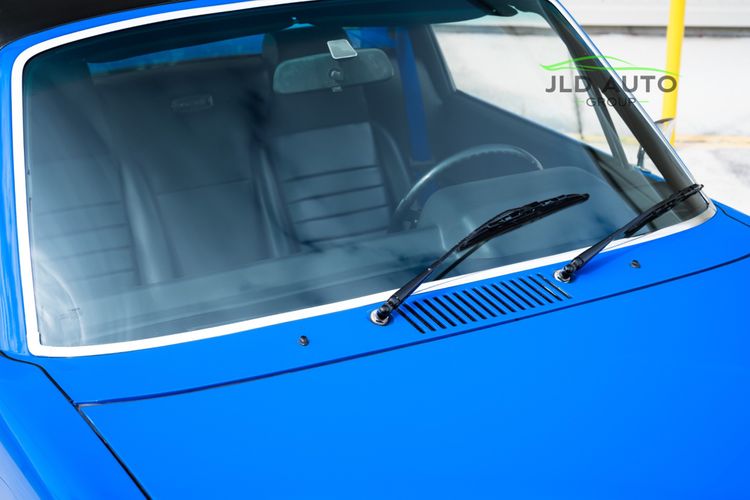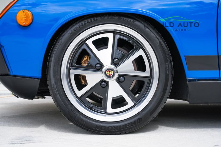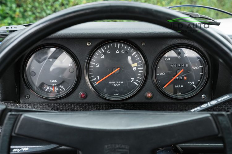 The impressive condition of this 914 is perhaps most noticeable with the exterior of the vehicle, as all Brightwork is either new or close-to-new and all lights + lenses have been removed and cleaned. New Grilles and Handles are mounted, and the Headlights + Fog Lights are updated. There is no pitting anywhere. The wheels have been converted from 5-Lug to 4-Lug, mounted alongside Drilled Hubs and Rotors. Also fitted on this example are '73 Front and '74 Rear bumpers, improving the cosmetics even further.