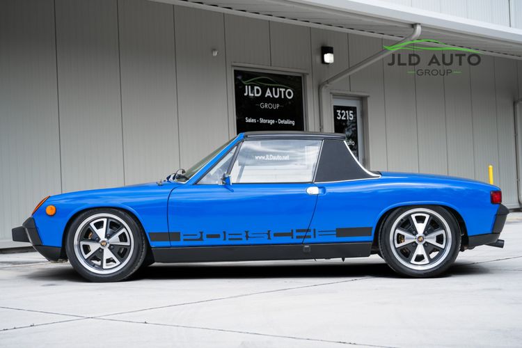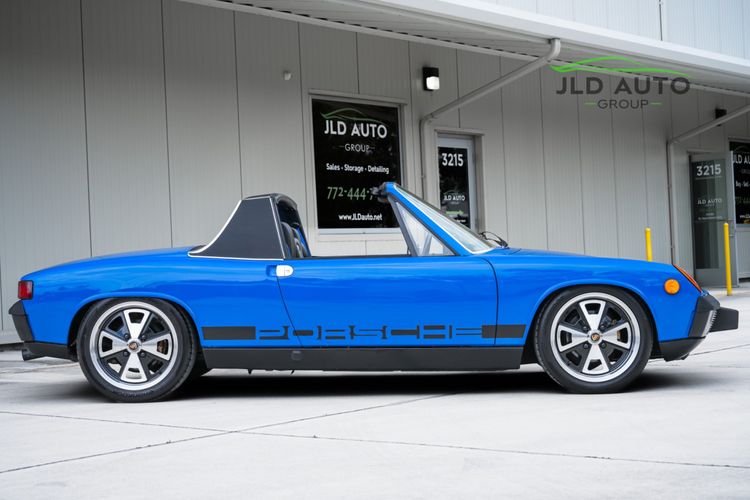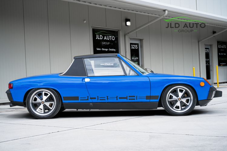 Available and up for your consideration at JLD Auto Group is this 1976 Porsche 914 2.0! Finished in a wonderful shade of Blue Exterior paint over a Black Leather Interior, this example is extremely well-sorted and presented, showing just 94k miles on the odometer with only approximately 1k miles traveled since the motor was rebuilt! Porsche 914 production in 1976 wasn't high compared to other years, with estimated unit production for the model year being around 4,000-4,100. This is an especially clean example which underwent a restoration in 2015, completed by 914 Restoration Group in Utah. Powering this '76 914 is an upgraded 2,056cc Type IV Engine, mated to a 5-Speed Side-Shift Transmission with new bushings installed. Inside the engine compartment are New Injectors, New Hoses, New Clamps, New Plugs, and a New Battery, making this a very mechanically-sound car. And speaking of sound, the drivetrain is improved upon further via a Custom-made Triad Exhaust system, invoking an even better vintage Porsche sound.