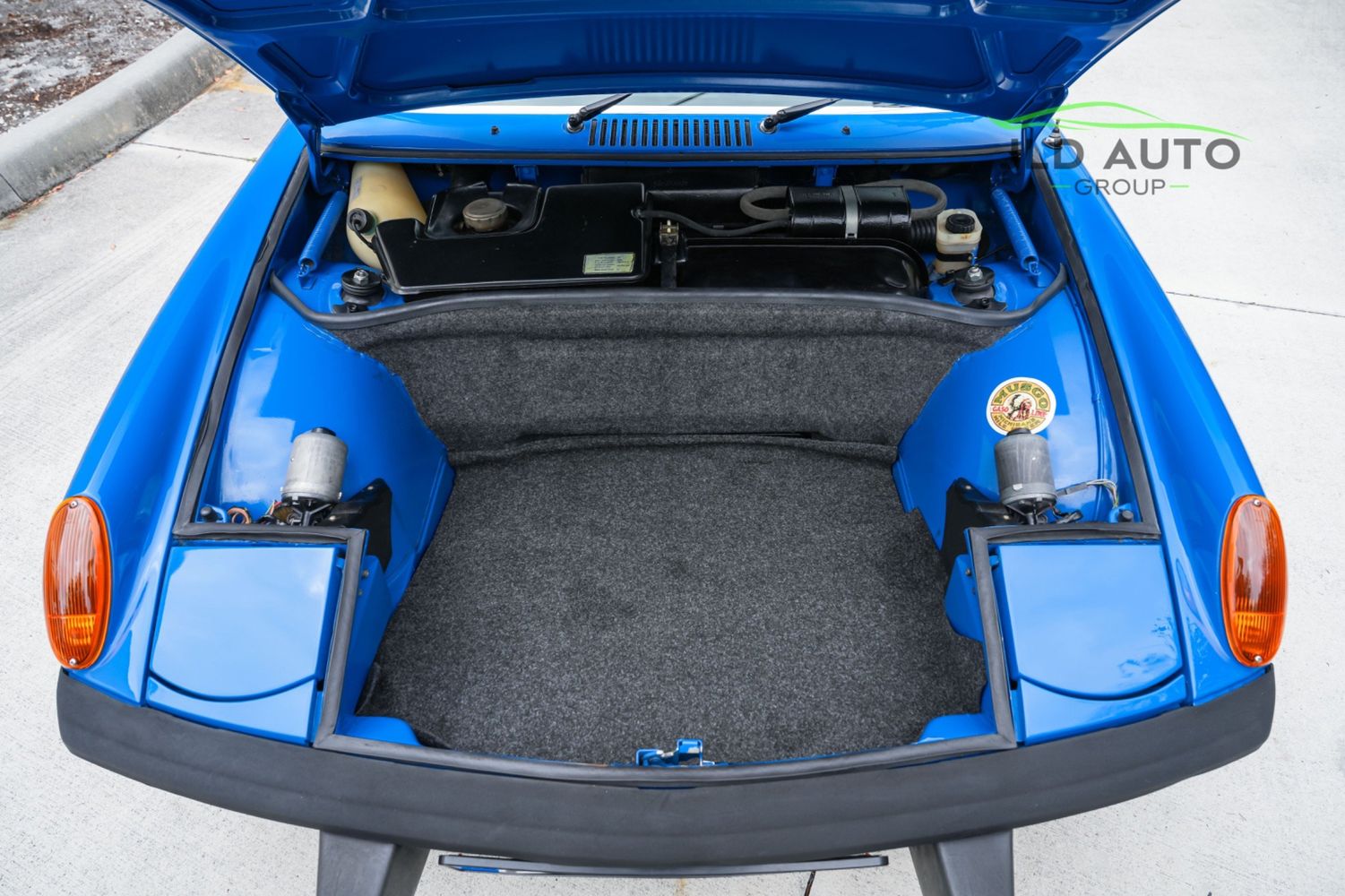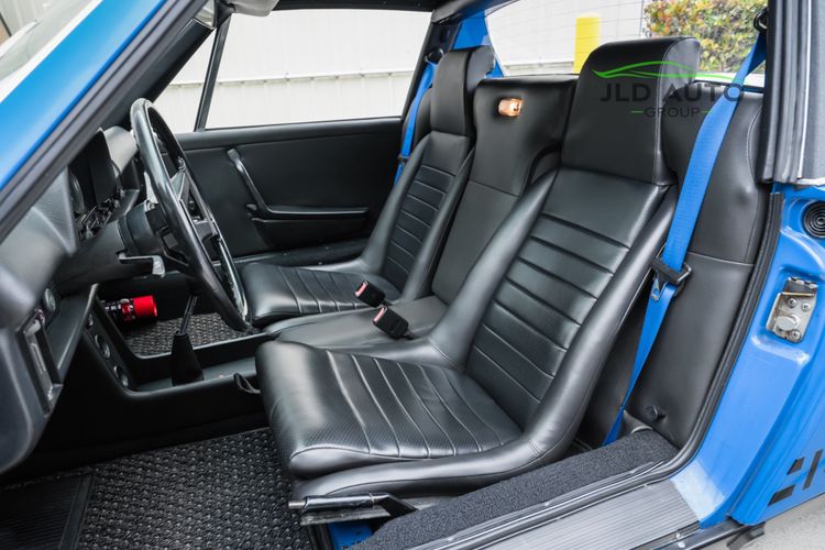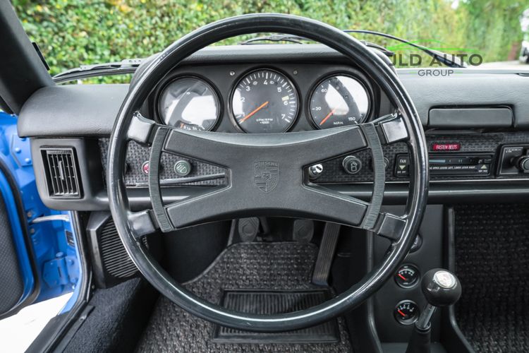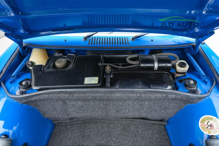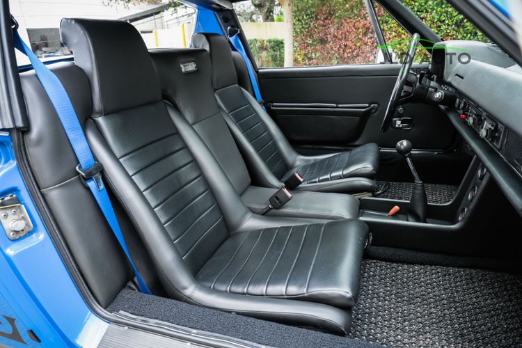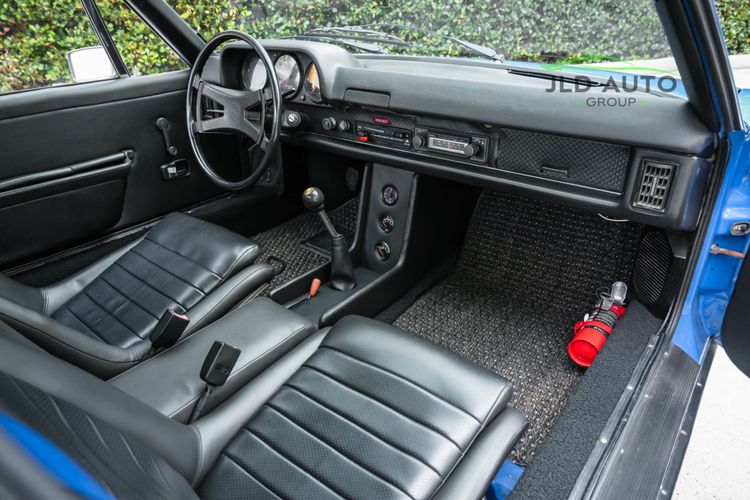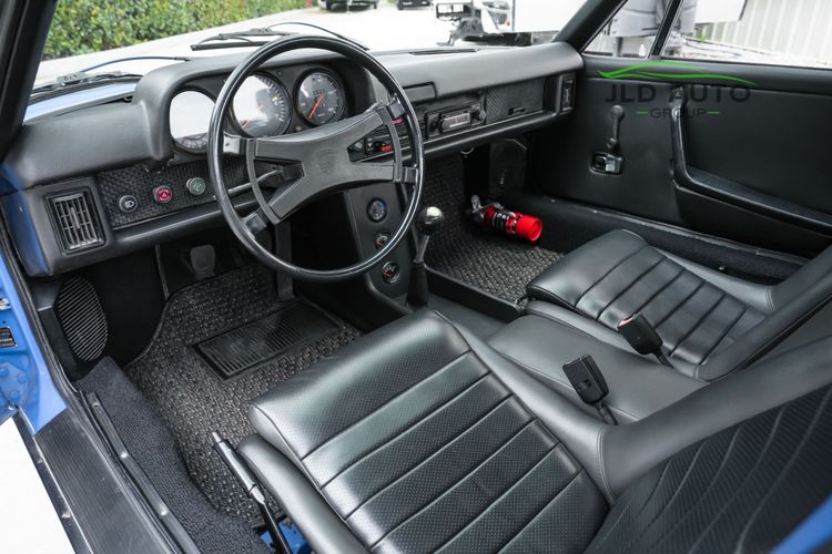 Controllability is refined maximally on this 914, as this car comes equipped with New Brakes, KYB Shocks and Struts at the front, and Bilstein Heavy-duty Shocks for the rear. Front and Rear Powder-coated Sway Bars are also installed. While cornering, occupants are restrained in their seats via Blue Seat Belts--aptly matching the exterior of the car. As for the rest of the interior, its condition is similarly impressive to the rest of the vehicle. Nearly the entire interior is like-new, including the Pillars, Handles, Dash Pad, and Front/Rear Trunk Carpets. Added to the interior are the Gauge Package and Center Console. The Gauges have been cleaned and re-assembled, and New Speakers are installed as well. The vehicle does not have A/C, but does have interior Heat. All weather-stripping is also recently replaced and is like-new. Finishing off the interior are new Coco Floor Mats, as well as a passenger footwell-mounted fire extinguisher.