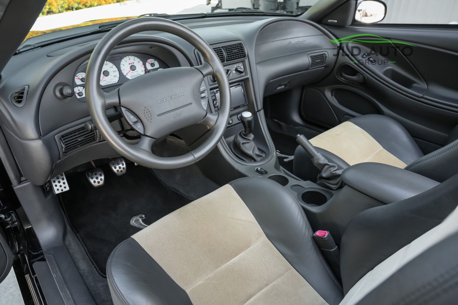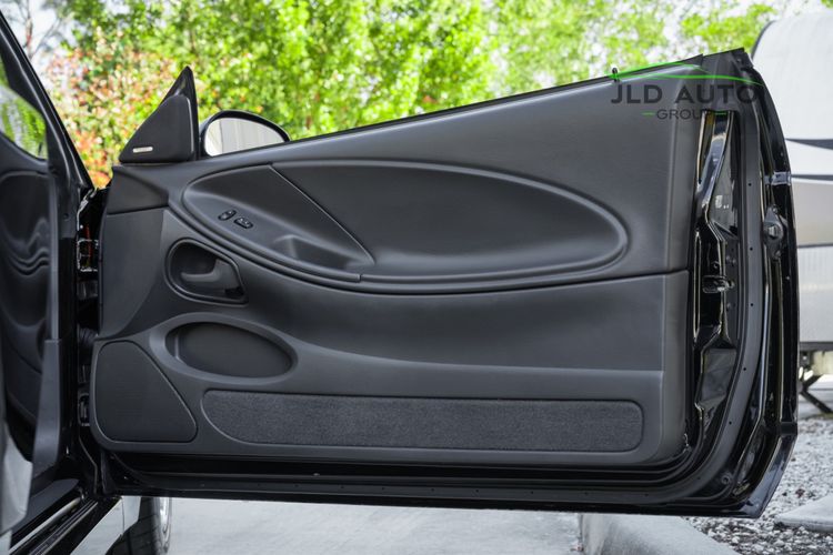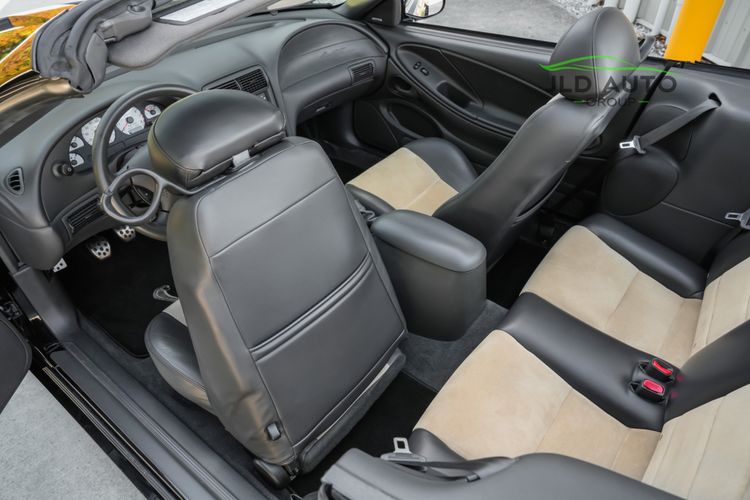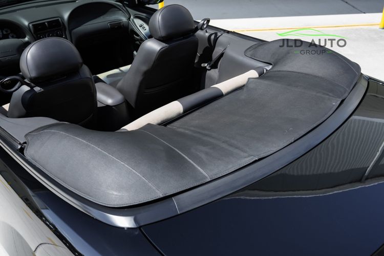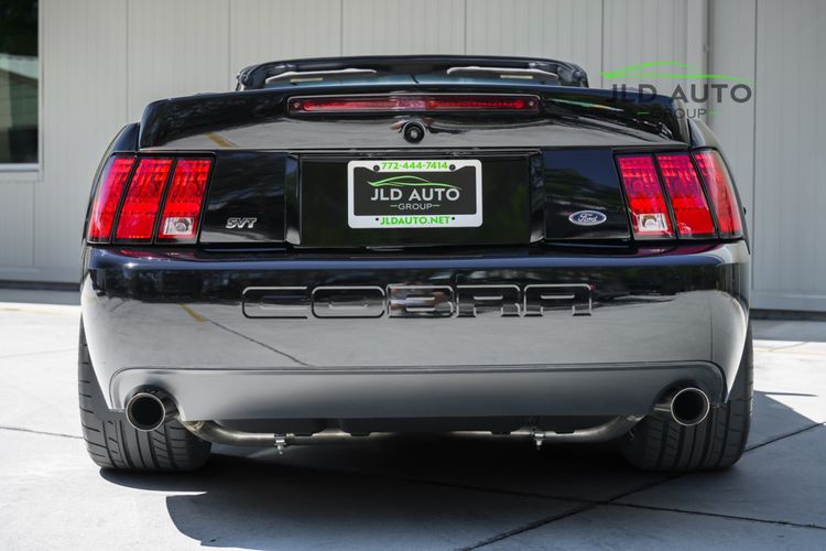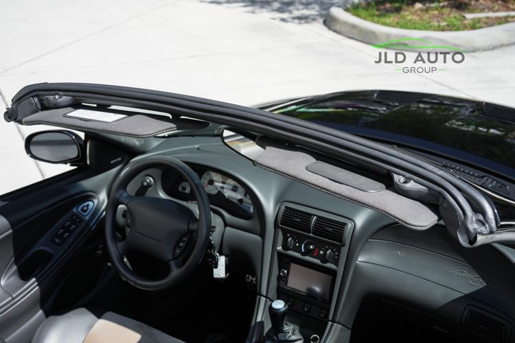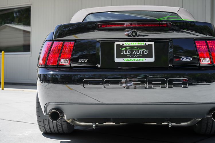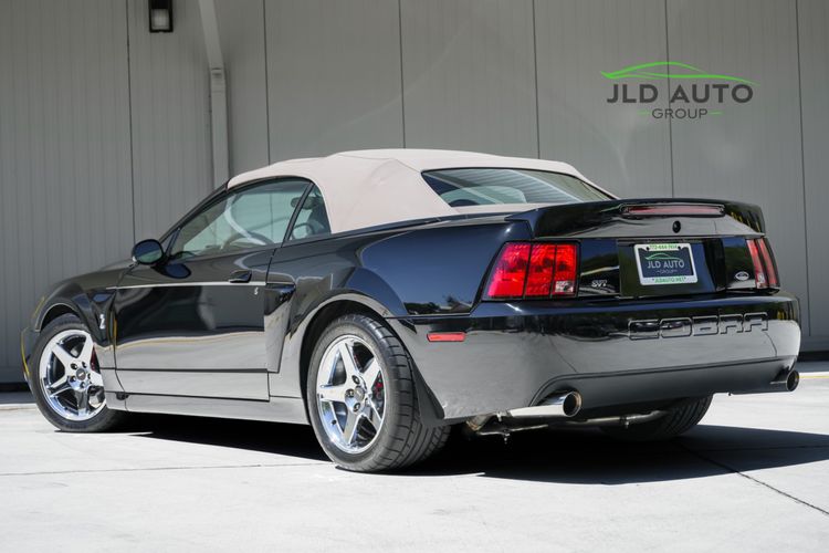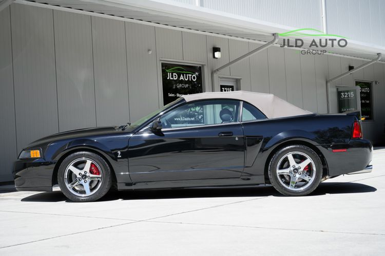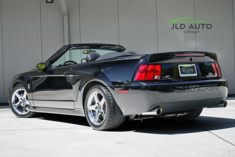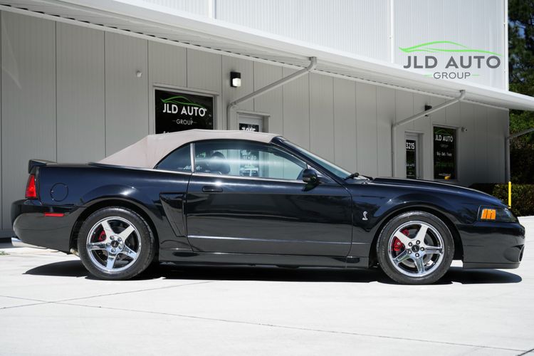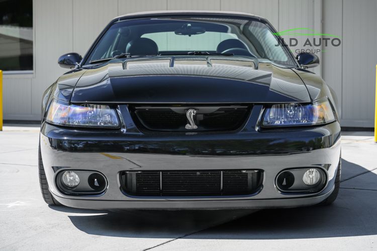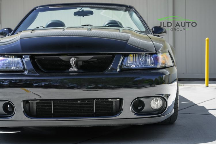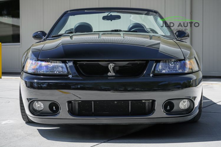 Available and up for your consideration at JLD Auto Group is this 2003 Ford Mustang SVT Cobra Convertible! Finished in 'Black Clearcoat' Exterior paint over a 'Dark Charcoal/Medium Parchment' Leather/Cloth Interior, this example also sports a matching 'Parchment' Power-operated Soft Top, and has just shy of 30k miles on the odometer! A well-kept example, this Cobra is powered by the 4.6L 4V EFI Supercharged V8 Engine, producing 390hp and 390 lb-ft of Torque in stock form. However, this example sports some tasteful modifications, including an Upgraded Pulley, JLT Intake, SLP Exhaust System, and an Upgraded Tune! Inside, the Radio Head Unit has been upgraded to a Kenwood unit, and outside, this example wears the 17" 5-Spoke Chrome Wheels. A stunner of a car that presents well all around!