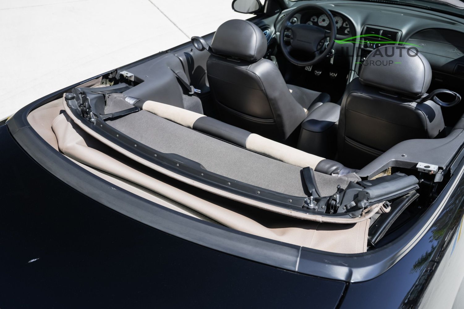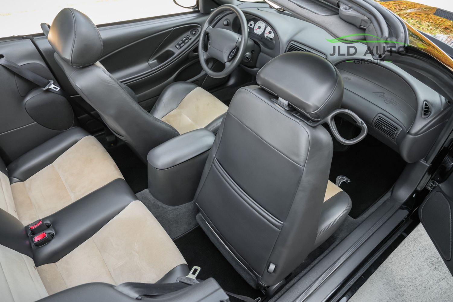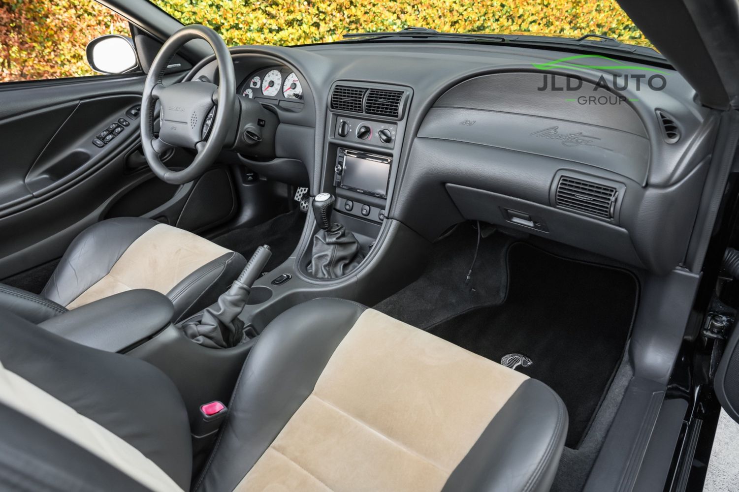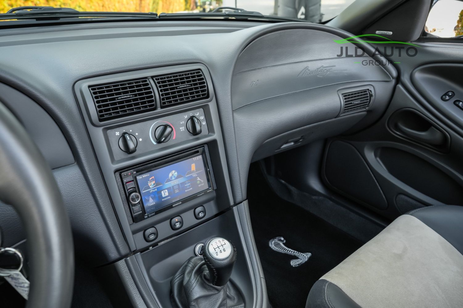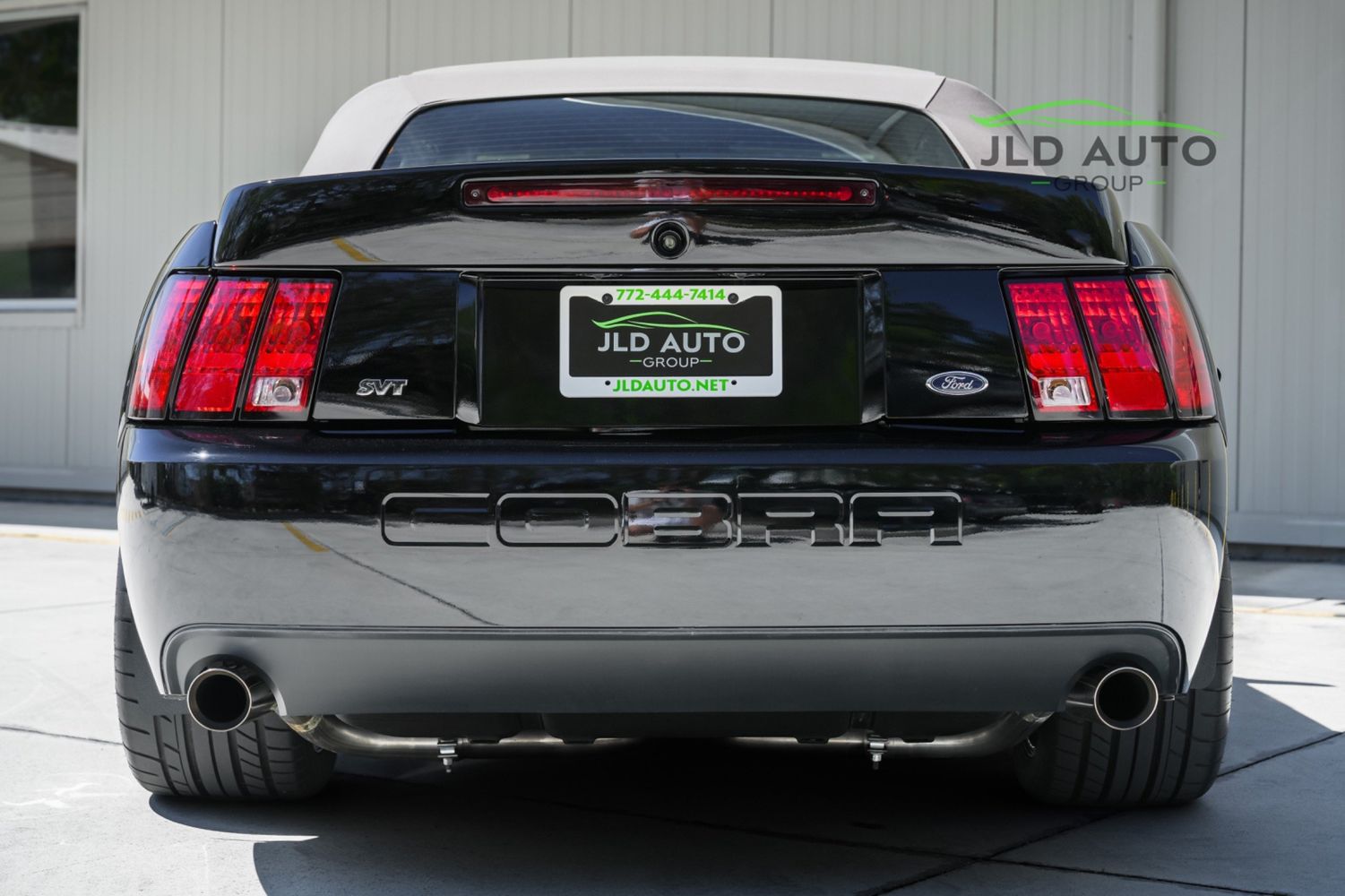 Available and up for your consideration at JLD Auto Group is this 2003 Ford Mustang SVT Cobra Convertible! Finished in 'Black Clearcoat' Exterior paint over a 'Dark Charcoal/Medium Parchment' Leather/Cloth Interior, this example also sports a matching 'Parchment' Power-operated Soft Top, and has just shy of 30k miles on the odometer! A well-kept example, this Cobra is powered by the 4.6L 4V EFI Supercharged V8 Engine, producing 390hp and 390 lb-ft of Torque in stock form. However, this example sports some tasteful modifications, including an Upgraded Pulley, JLT Intake, SLP Exhaust System, and an Upgraded Tune! Inside, the Radio Head Unit has been upgraded to a Kenwood unit, and outside, this example wears the 17" 5-Spoke Chrome Wheels. A stunner of a car that presents well all around!