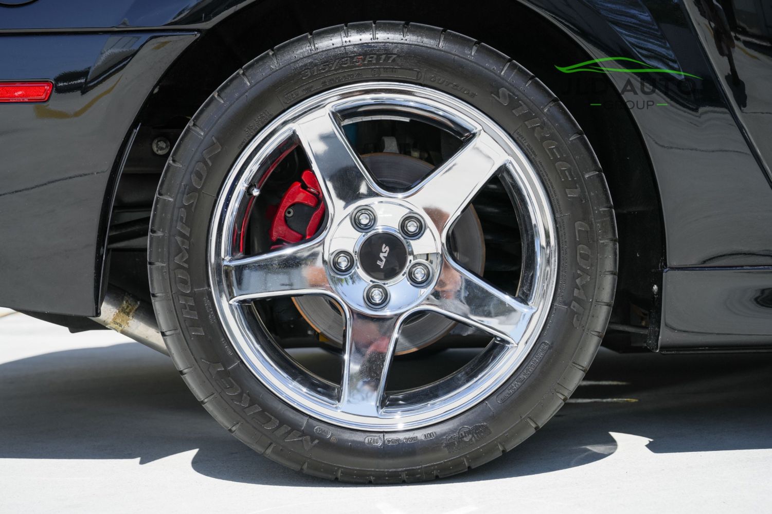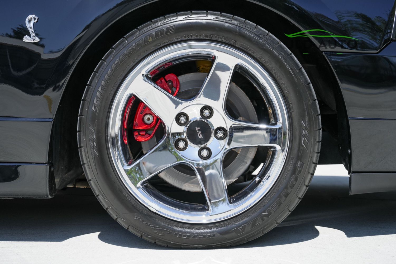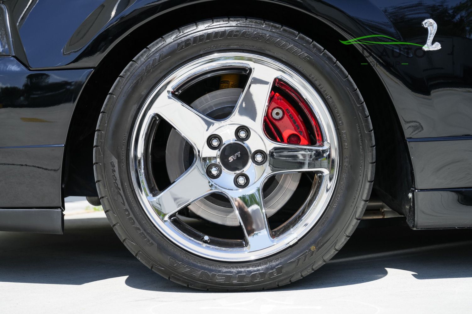 The Supercharged V8 is mated to a 6-Speed Manual Transmission, and power is--perhaps unsurprisingly--sent to only the rear wheels. SVT furthermore fitted these Cobras with a Handling-tuned suspension system, featuring Linear Rate Springs, Gas Pressurized Front Struts and Rear Shocks, and an Independent Rear Suspension. High Performance Tires and Power 4-Wheel Disc Antilock Brakes are found at each corner, and a Traction-Lok Axle helps put the power down in a managed manner. On the inside, a special SVT Leather Interior is accompanied by SVT Instrumentation, a Mach Audio System, a 6-Disc CD Changer, and a 6-Way Power Driver's Seat.