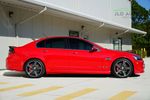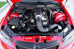 The G8 GXP Firehawk contrasts itself from the G8 GXP in that the Firehawk boasts a supercharged engine along with a few other mechanical and cosmetic alterations. The Cold Air Induction and Custom PCM Tune help churn out the extra horsepower compared to the normal G8 GXP, and are further complemented by the Performance Suspension and Competition Brake Package helping to manage said power. Cosmetically, the exterior of the car wears a black stripe, as well as the more obviously-differentiating Firehawk badging and 19" Aluminum Wheels. On the inside, Firehawk logos are embroidered within the headrests, and are supplemented by a passenger-side dashboard Firehawk badge.