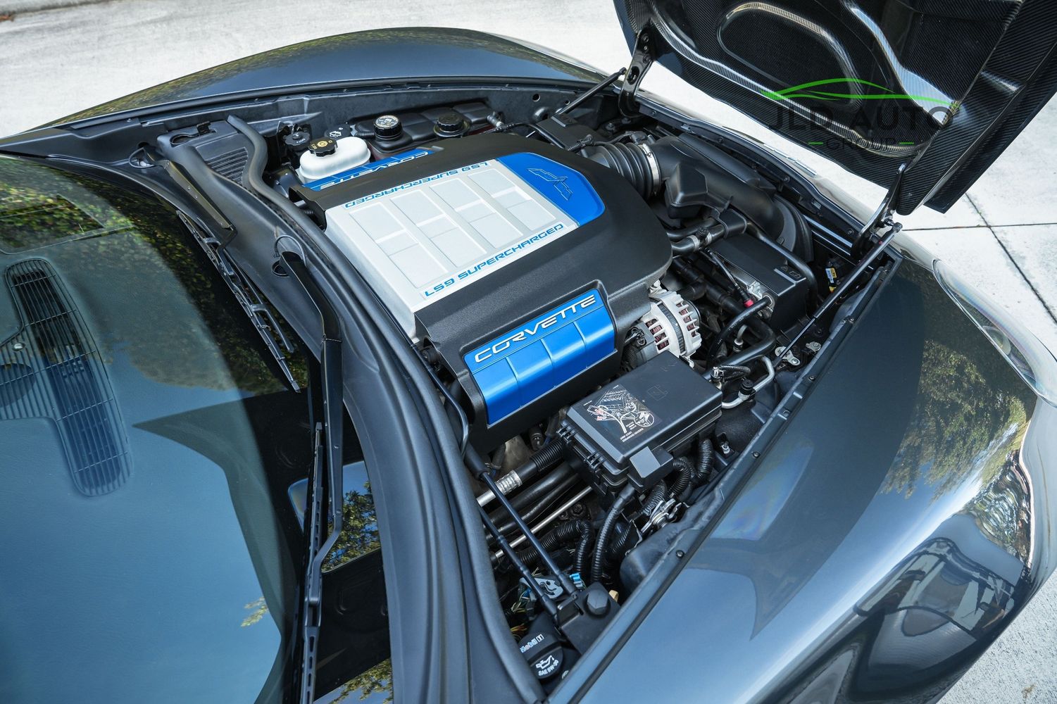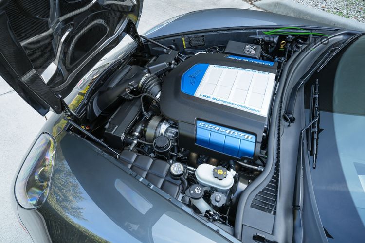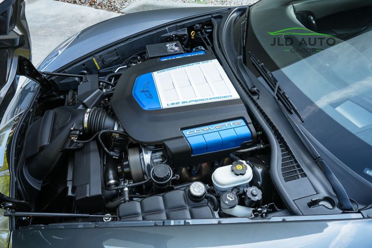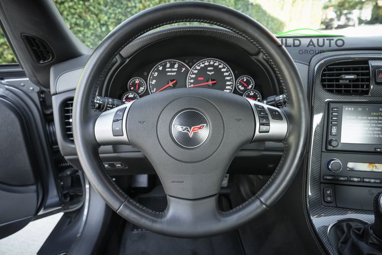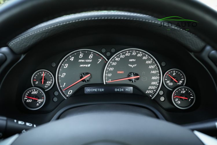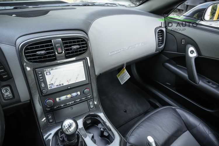 Standard in the C6 ZR1 is the LS9 6.2L Supercharged V8 engine, churning out 638hp and 604 lb-ft of Torque. These numbers are quite formidable even amidst the modern sports car world, especially when considering that the C6 ZR1 was introduced 16 years ago for the 2009 model year. The fun continues within the drivetrain as the LS9 V8 is mated to a 6-Speed Manual Transmission, which sends power via a Limited Slip Differential to just the Rear Axle and Wheels. Active Handling, a Traction Control System, 4-Wheel Independent Suspension, and an Aluminum Frame Structure all help to manage the available power, reduce weight, and make the ZR1 more agile. To assist in weight reduction beyond the Aluminum Frame Structure, Carbon Fiber comprises the Fenders, Floor Panels, Hood, Splitter, Rockers, and Roof Panels, with the latter three body panel types possessing exposed Carbon Fiber weave. As for tech and convenience, Power Mirrors, Xenon High Intensity Discharge Headlamps, Automatic Dual Zone Climate Control, and a Head-up Display are all also provided, with these features just being a highlighted sample and not inclusive of several other standard convenience features also equipped in the ZR1.