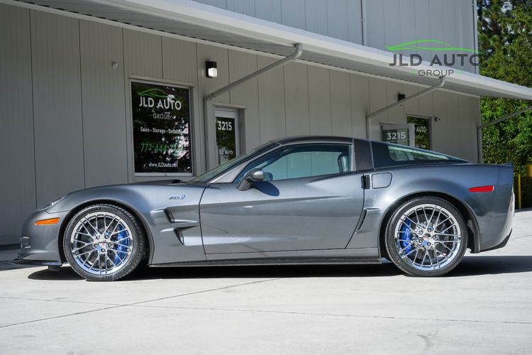 Available and up for your consideration at JLD Auto Group is this 2011 Chevrolet Corvette ZR1! Finished in stunning 'Cyber Gray Metallic' Exterior paint over a 'Dark Titanium' Leather Interior, this example with just 2 Previous Owners has just 8k miles on the odometer! Critically, this example is fitted with the 3ZR Premium Equipment Group, giving it numerous features including, but not limited to, a Custom Leather-wrapped Interior, a Bose Premium 7-Speaker Sound System, a Power Telescoping Steering Wheel, Heated Seats w/ Memory Settings, a Universal Home Remote, and a Touchscreen Navigation system. Also equipped on this ZR1 are the Chrome Aluminum ZR1 Wheels, adding some flash to the exterior. A Corvette Pedal Cover Set rounds out the brief list of optional equipment, but the ZR1 shines in its nature as the top-dog of the C6 Corvette lineup by boasting an impressive list of standard equipment.
