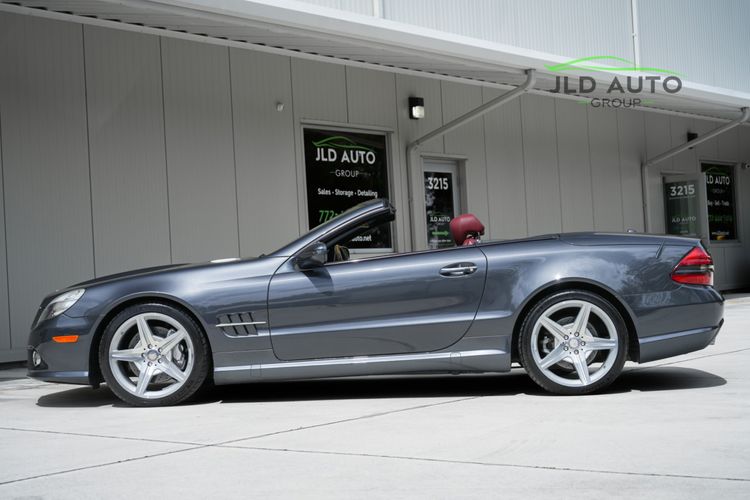 Available and up for your consideration at JLD Auto Group is this 2012 Mercedes-Benz SL 550 Roadster! Finished in sleek 'Steel Gray Metallic' Exterior paint over a 'Red/Black' Premium Leather Interior, this example has 55k miles on the odometer, and is presented in excellent condition for its mileage! Full Vehicle PPF and a Recent Ceramic Coating have this example still looking fantastic, and its options list doesn't skimp out either. Firstly, the Full Leather Seating Package installs Premium Leather Seats and a Wood/Leather Steering Wheel + Shift Knob, creating an even more luxurious interior over the standard SL. The Sport Wheel Package follows this up by adding several features, including 19" AMG 5-Spoke Aluminum Wheels, a paddle shift "M" mode for the transmission, Perforated Rear Disc Brakes, Silver Front Brake Calipers, Dark-Tinted Headlamps and Tail Lamps, and even a Sport Steering Wheel with Shift Paddles. The Panorama Roof w/ Sunshade is also optioned on this example to give a more enlightened cockpit environment while the hardtop convertible top is in its upper position, and Mercedes-Benz's PARKTRONIC system is additionally equipped. Finally, Illuminated Door Sills and Black Ash Wood Trim for the interior round out the list of optional equipment.