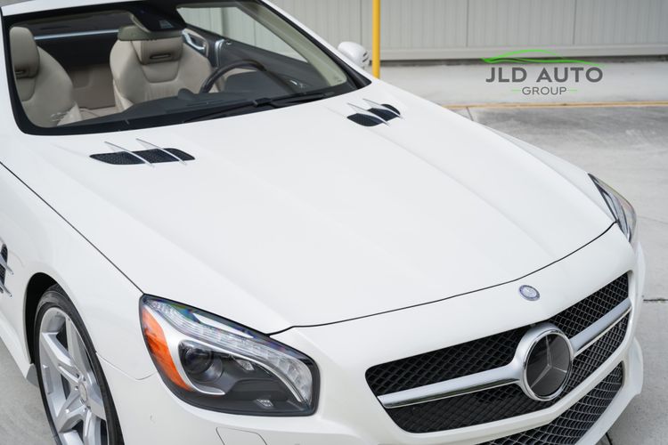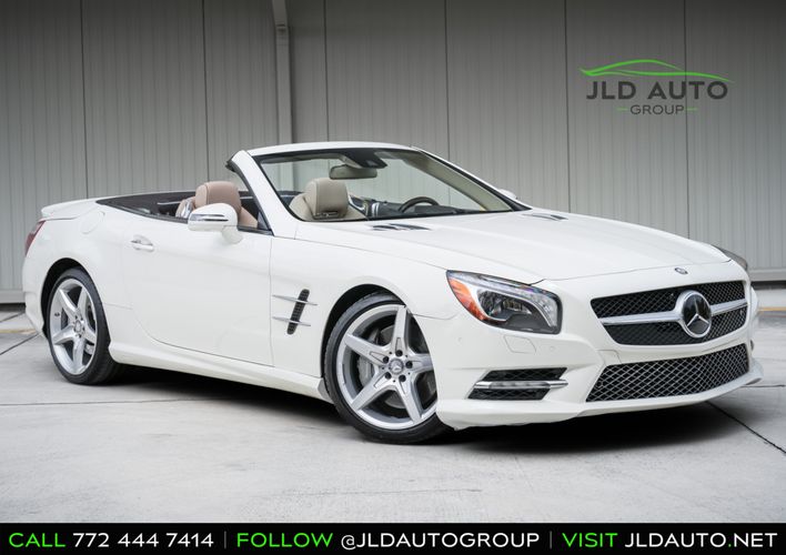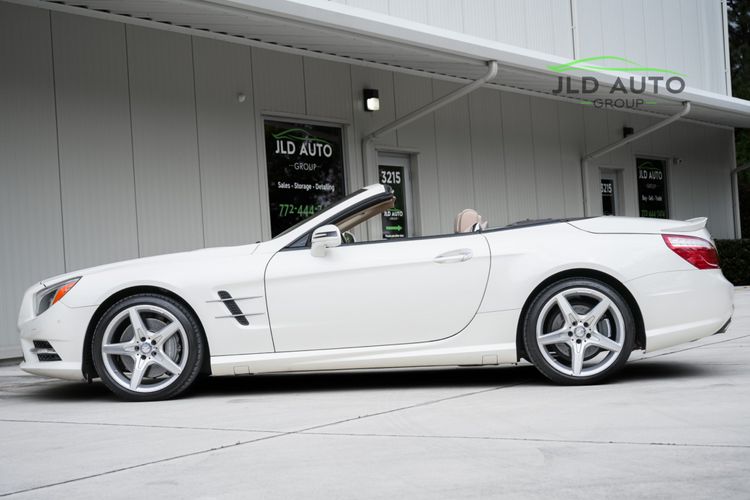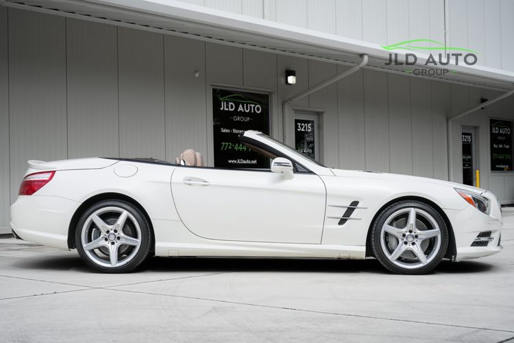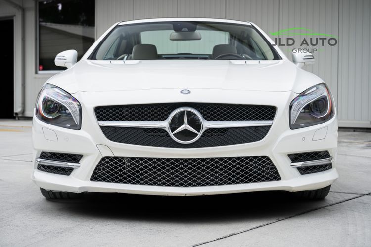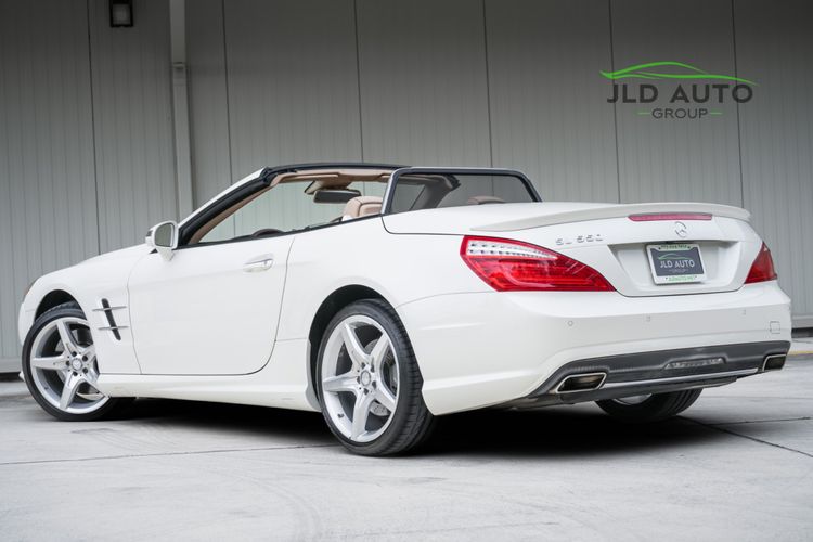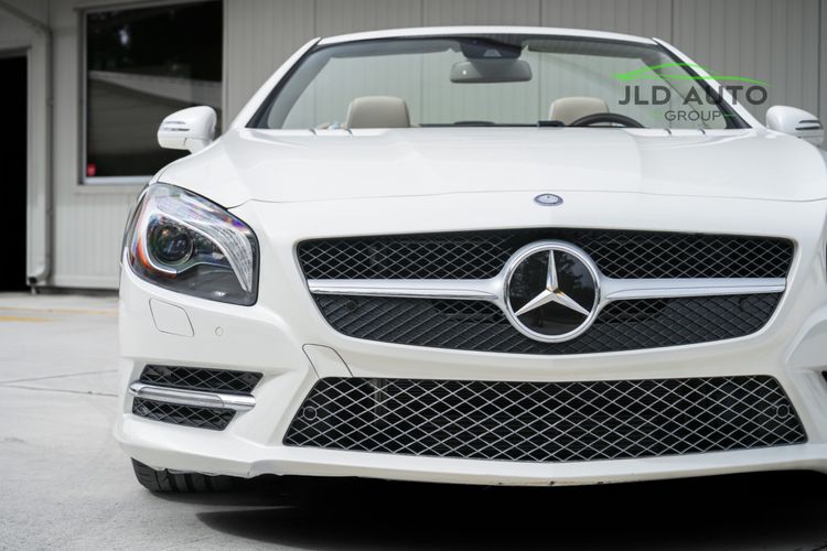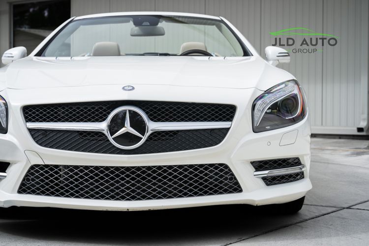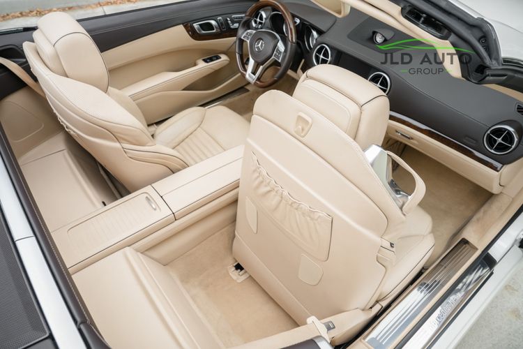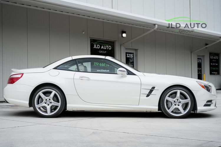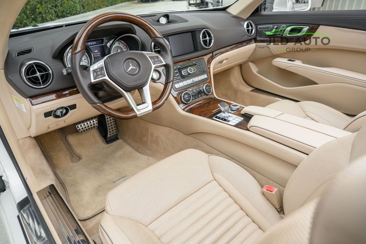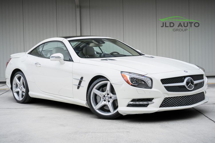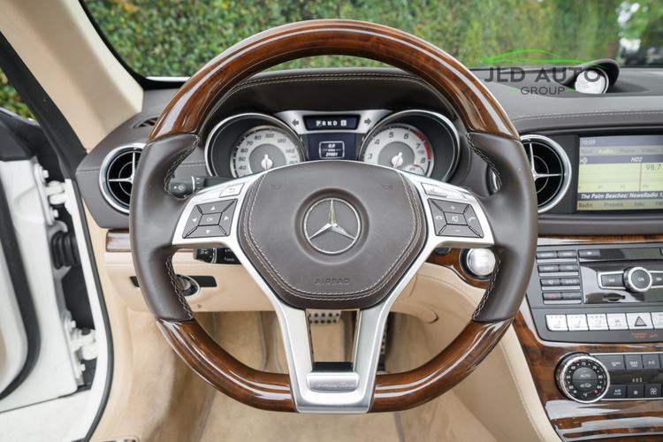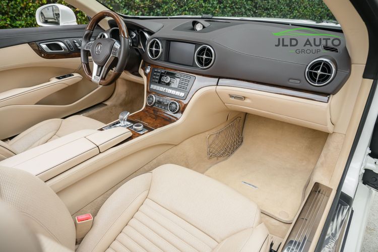 Available and up for your consideration at JLD Auto Group is this 2013 Mercedes-Benz SL 550 Roadster! A classy example, this SL 550 is finished in 'Diamond White' Exterior paint over a 'Beige/Brown Premium Leather' Interior, and has just 29k miles on the odometer! When new, this SL boasted an original MSRP of over $118,700, and therefore sports a great options list, beginning with the Premium 1 Package. This package provides a Rearview Camera, PARKTRONIC with Active Parking Assist, Active Heated/Ventilated Multicontour Seats, Mercedes-Benz's AIRSCARF upper-body climate control system, KEYLESS-GO, and an Electronic Trunk Closer. Additionally equipped is the Driver Assistance Package, providing it with tech features such as DISTRONIC PLUS with PRE-SAFE Brake, Active Lane Keeping Assist, and Active Blind Spot Assist. Also optioned is the Sport Wheel Package, granting the SL a set of 19" AMG 5-Spoke Wheels, a Sport Steering Wheel featuring Silver Painted Shift Paddles, Silver Painted Front Brake Calipers, and Perforated Rear Disc Brakes. Other options include an upgraded Steering Wheel finished in Wood/Leather, as well as an Analog Clock mounted on the Dash Top.