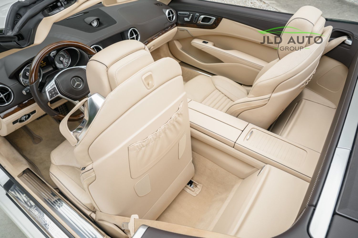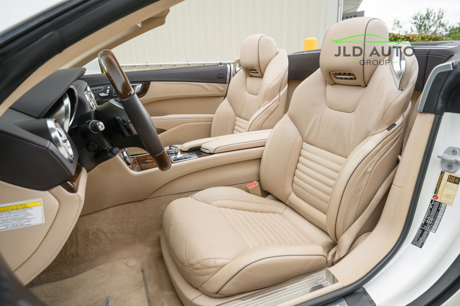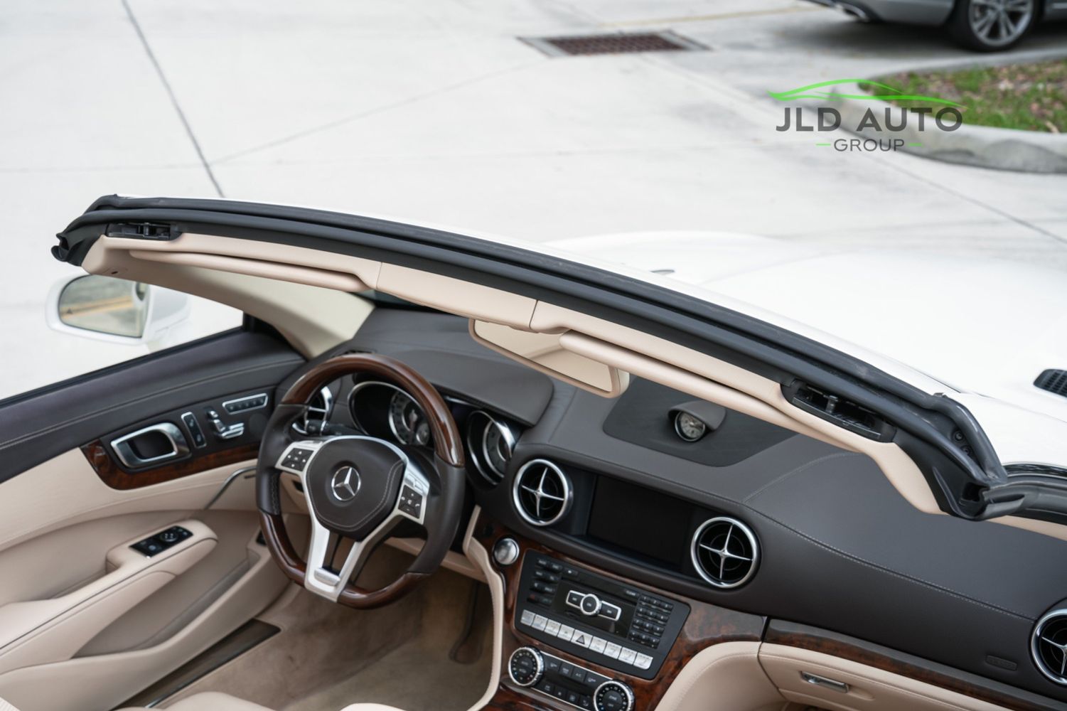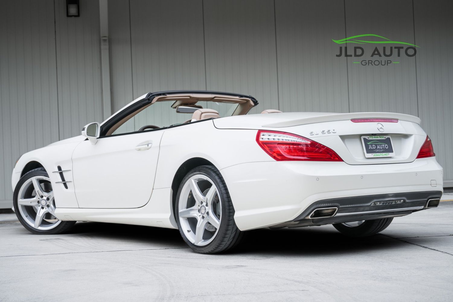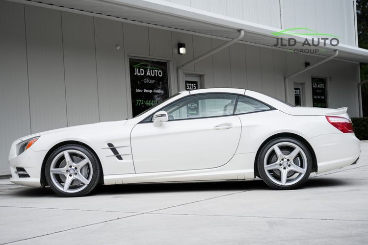 Available and up for your consideration at JLD Auto Group is this 2013 Mercedes-Benz SL 550 Roadster! A classy example, this SL 550 is finished in 'Diamond White' Exterior paint over a 'Beige/Brown Premium Leather' Interior, and has just 29k miles on the odometer! When new, this SL boasted an original MSRP of over $118,700, and therefore sports a great options list, beginning with the Premium 1 Package. This package provides a Rearview Camera, PARKTRONIC with Active Parking Assist, Active Heated/Ventilated Multicontour Seats, Mercedes-Benz's AIRSCARF upper-body climate control system, KEYLESS-GO, and an Electronic Trunk Closer. Additionally equipped is the Driver Assistance Package, providing it with tech features such as DISTRONIC PLUS with PRE-SAFE Brake, Active Lane Keeping Assist, and Active Blind Spot Assist. Also optioned is the Sport Wheel Package, granting the SL a set of 19" AMG 5-Spoke Wheels, a Sport Steering Wheel featuring Silver Painted Shift Paddles, Silver Painted Front Brake Calipers, and Perforated Rear Disc Brakes. Other options include an upgraded Steering Wheel finished in Wood/Leather, as well as an Analog Clock mounted on the Dash Top.