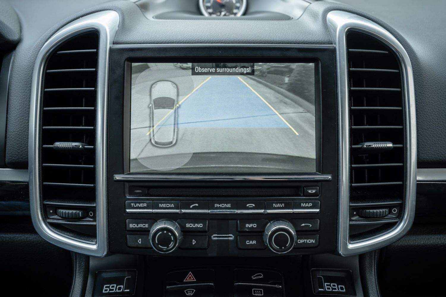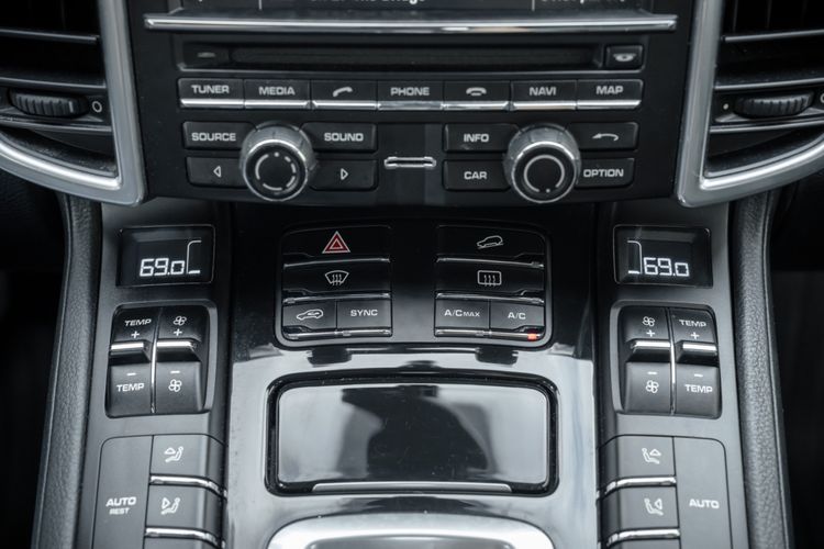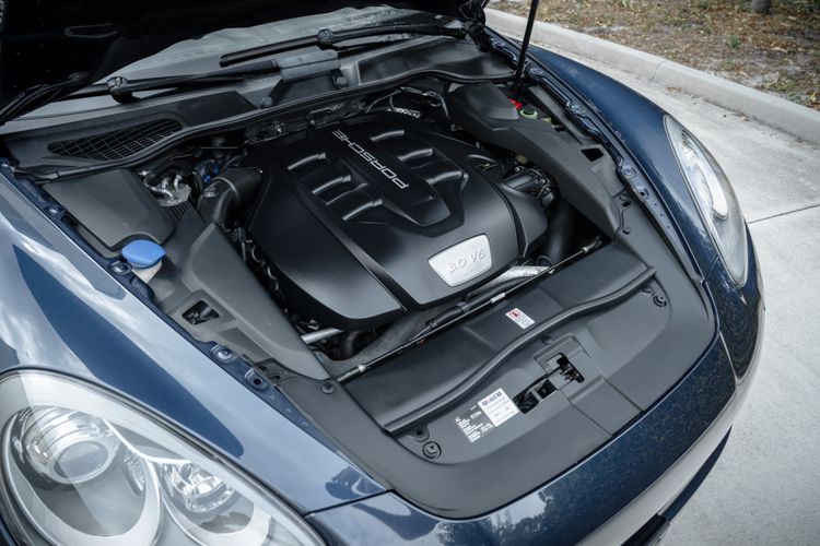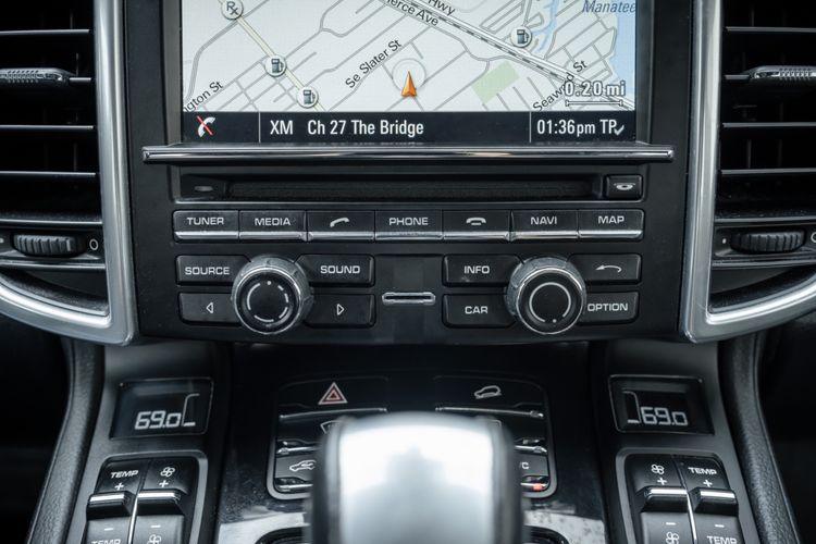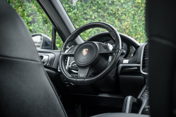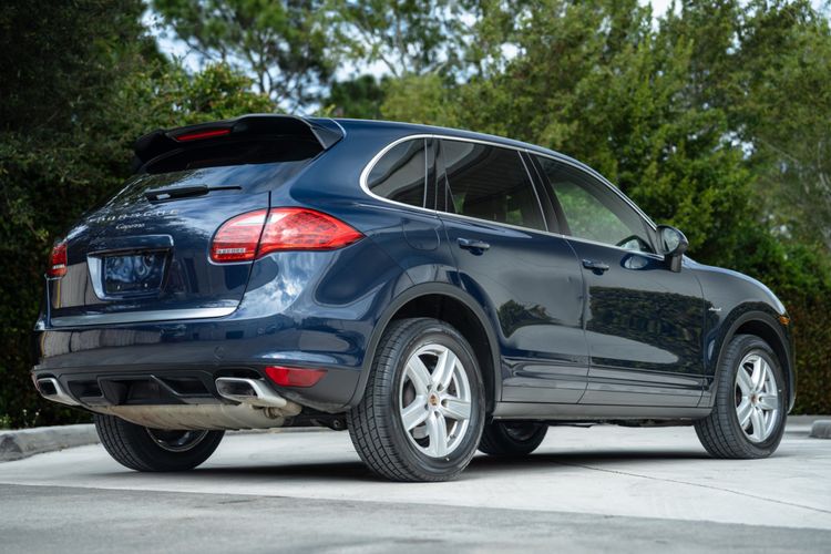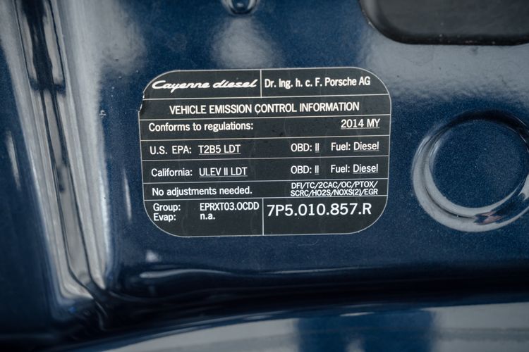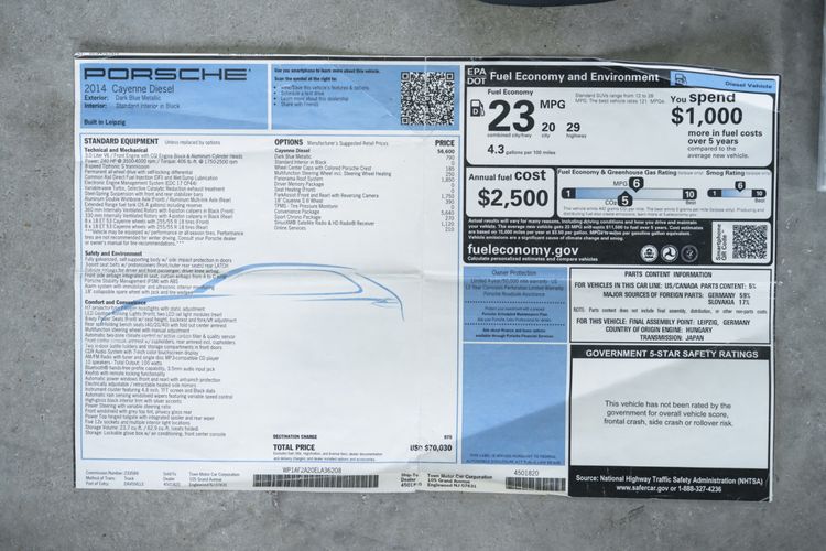 Powering the 2014 Porsche Cayenne Diesel is a 3.0 Diesel V6 Engine, producing 240hp and 406 lb-ft of Torque. This is mated to an 8-Speed Tiptronic S Transmission, and power is routed to the wheels via a Permanent All-Wheel-Drive System featuring a Self-Locking Differential. Steel Spring Suspension features Front and Rear Stabilizer Bars, while an Aluminum Double Wishbone Axle is found up front and an Aluminum Multi-link Axle can be found at the rear. Ventilated Disc Brake Rotors are present at all four corners, with 6-Piston Calipers at the front and 4-Piston Calipers at the rear. For safety and tech features, H7 Projector-type Halogen Headlights are equipped, featuring LED Daytime Running Lights. Automatic Two-Zone Climate Control is also present, as well as Bluetooth Hands-free Technology. The Side View Mirrors feature heating functionality, and the Windshield Wipers include Rain-sensing technology. A 10-Speaker Audio System is also included within the standard equipment list, adding to the comfort of the interior environment.
