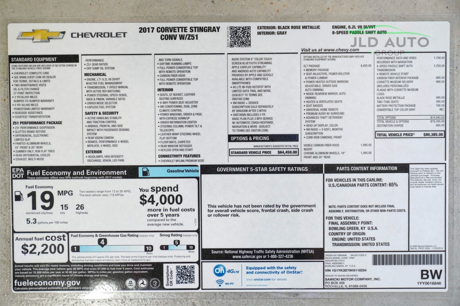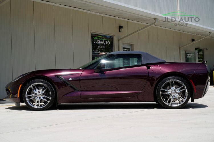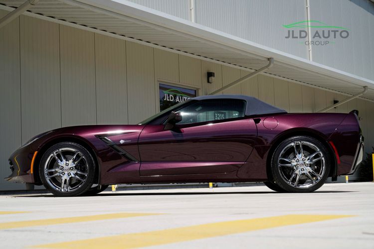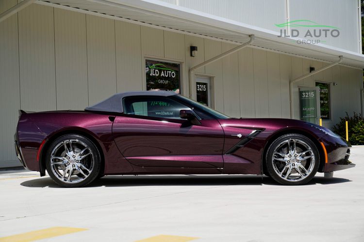 Available and up for your consideration at JLD Auto Group is this 2017 Chevrolet Corvette Stingray Convertible! Finished in a stunning special upgrade paint shade of 'Black Rose Metallic' over a 'Gray' Interior, this 1-Owner example with only 9k miles is one of the most stunning you'll find. The interior more specifically sports the Two-Tone Seats, thus resulting in a color split between 'Gray' and 'Ebony.' This example is equipped with the 2LT Package, providing it with features such as the all-important Curb View Front Cameras, Memory Package, Heated/Ventilated Seats, and the Premium Bose Surround Sound Audio System. The Z51 Performance Package is also present, equipping this C7 with the Z51 Performance Suspension, slotted Brake Rotors, and a Limited Slip Differential with a Differential Cooler. Also provided is a Performance Multi-Mode Exhaust, along with Z51 Gear Ratios and a Dry Sump Oil System. Continuing along the optional equipment list, this example wears 19"/20" Chrome Aluminum Wheels, and sports the Exposed Carbon Fiber Hood Insert. Inside, this C7 features the Carbon Fiber Interior Package, along with the 8-Speed Paddle Shift Automatic Transmission and the Performance Data and VIdeo Recorder with Navigation. As mentioned, the seats are an optional Two-Tone color split, and being a Museum Delivery car, this example features a personalized NCM Plaque on the center control stack. Finally, a Gray Soft Top rounds out the optional equipment list.