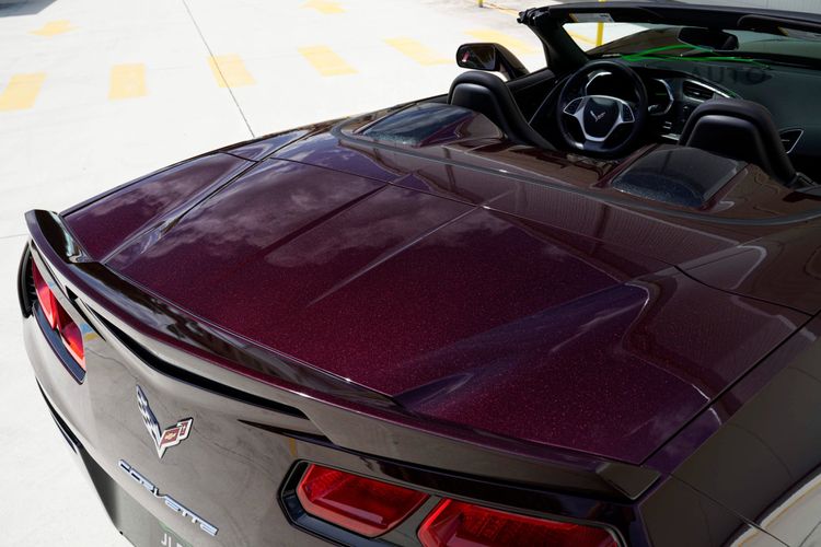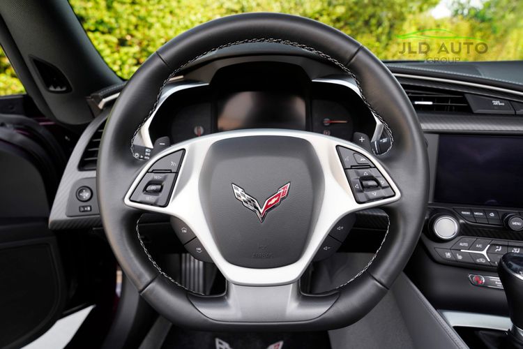 As for non-optional equipment, standard in the C7 is the 6.2L LT1 V8 engine, producing 455hp and 460 lb-ft of torque. A Driver Mode Selector and Active Fuel Management System help to adjust the drivetrain to different driving environments--all the while, drivers enjoy a quintessential Corvette driving experience with convenience elements such as a Rear Vision Camera, a Full-Power + Remote-capable Convertible Top Operation, Apple CarPlay/Android Auto, and an 8" Color Touchscreen Display for infotainment controls. Finally, a Carbon Fiber Hood saves weight up front, while a Leather-wrapped flat bottom steering wheel and Xenon High Discharge Headlamps add more features to an already impressive specification.
