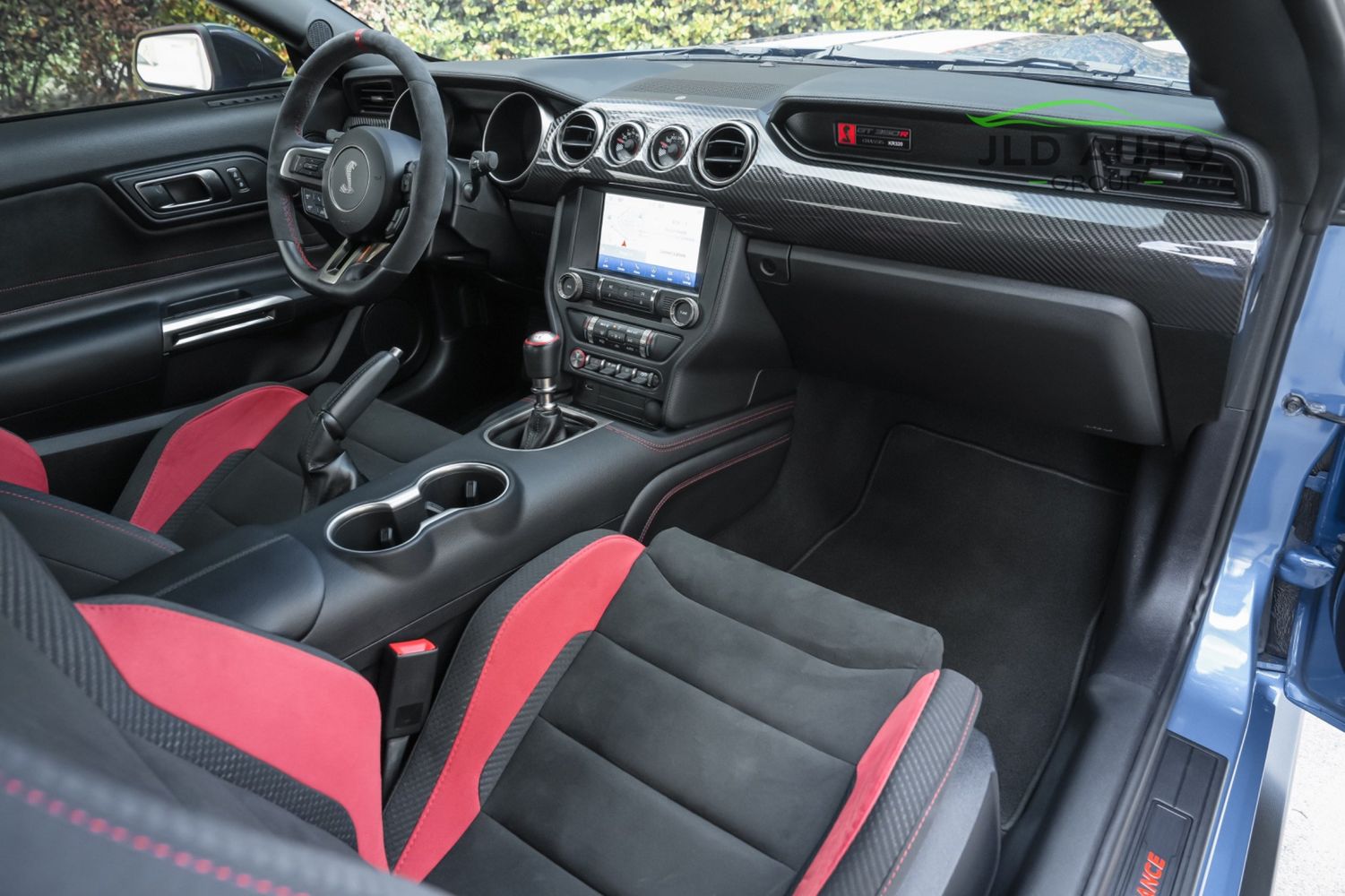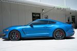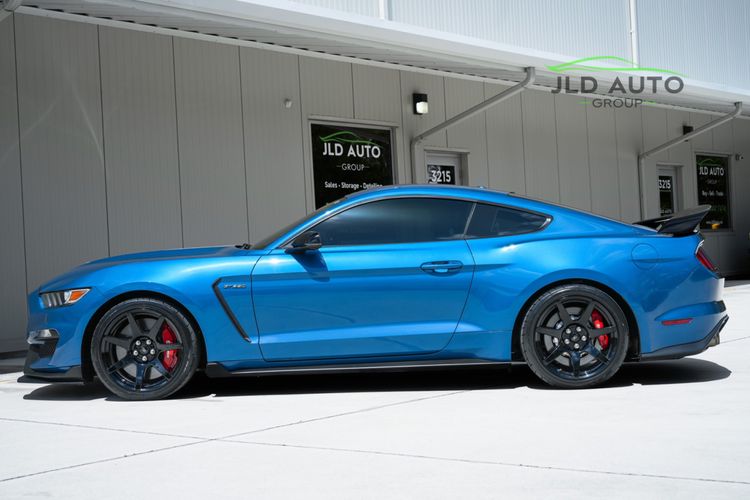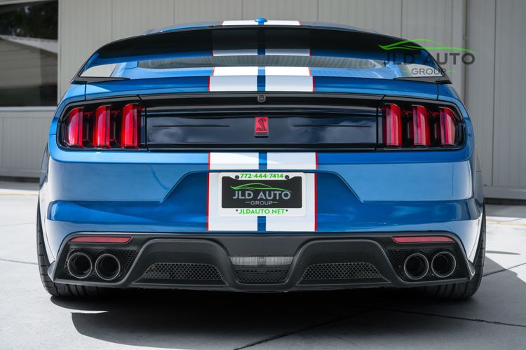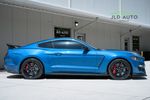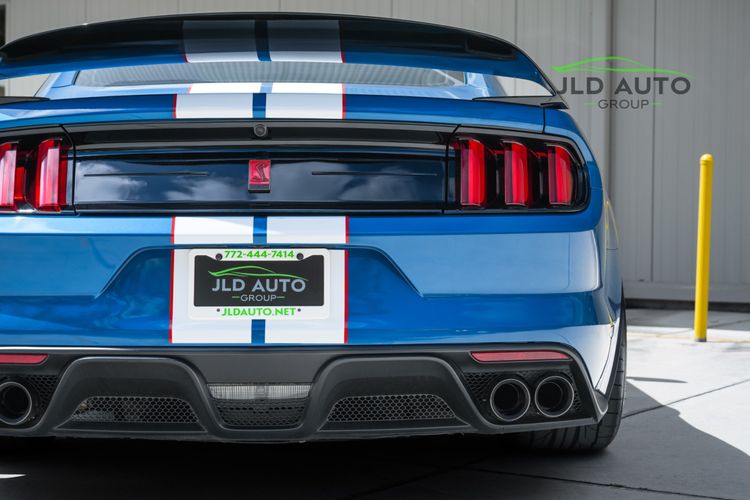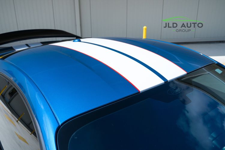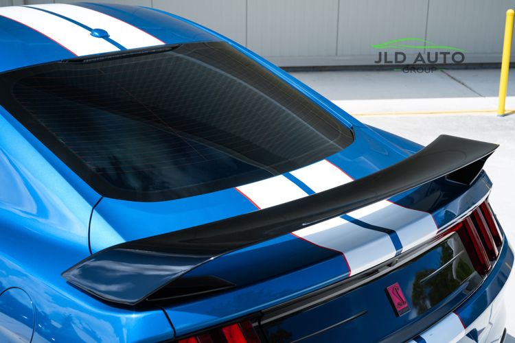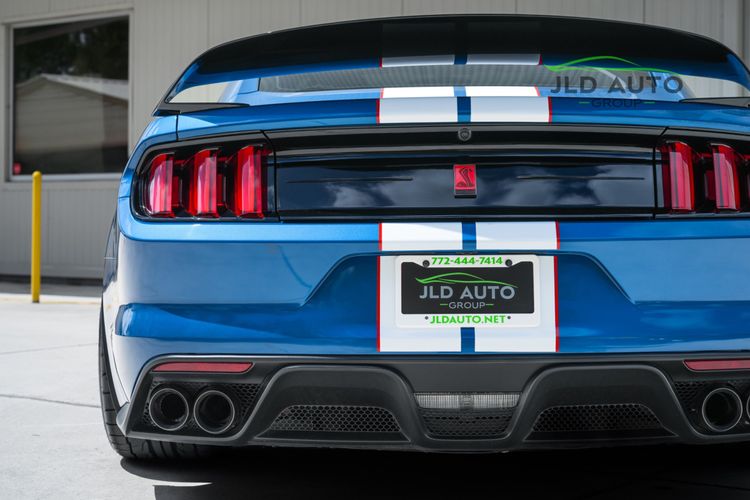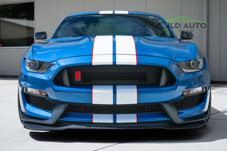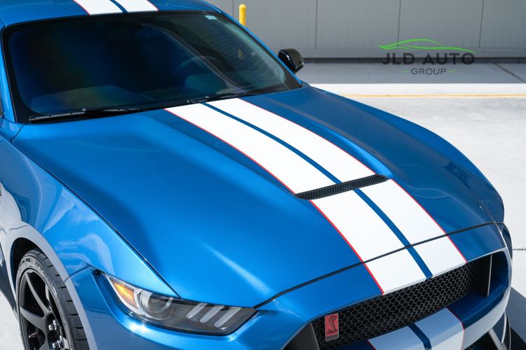 Available and up for your consideration at JLD Auto Group is this 2019 Ford Mustang Shelby GT350R! An excellent example, this Shelby has just 8k miles on the odometer, and has just 2 Previous Owners. Finished in 'Ford Performance Blue'' Exterior Paint over an 'Ebony w/ Red Accents' Interior, this GT350R wears a desirable-yet-succinct options list, beginning with the Electronics Package. This grants the GT350R the Premium 12-Speaker B&O Sound System, Blind Spot Monitoring w/ Cross Traffic Alert, and the Voice-Activated Touchscreen Navigation System. Also equipped for the interior is the Exposed Carbon Fiber Instrument Panel, adding a cosmetic touch of sportiness for occupants. Outside, this example sports the optional 'White w/ Red Accent' Vinyl Over-the-Top Stripe, pairing nicely with the red brake calipers and simultaneously providing some contrast from the body color.