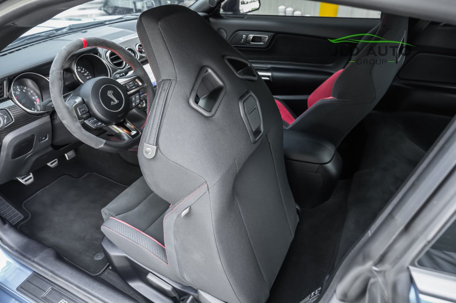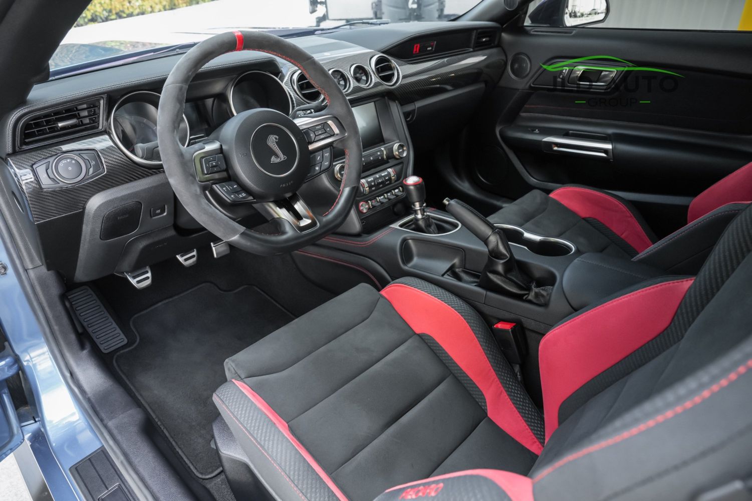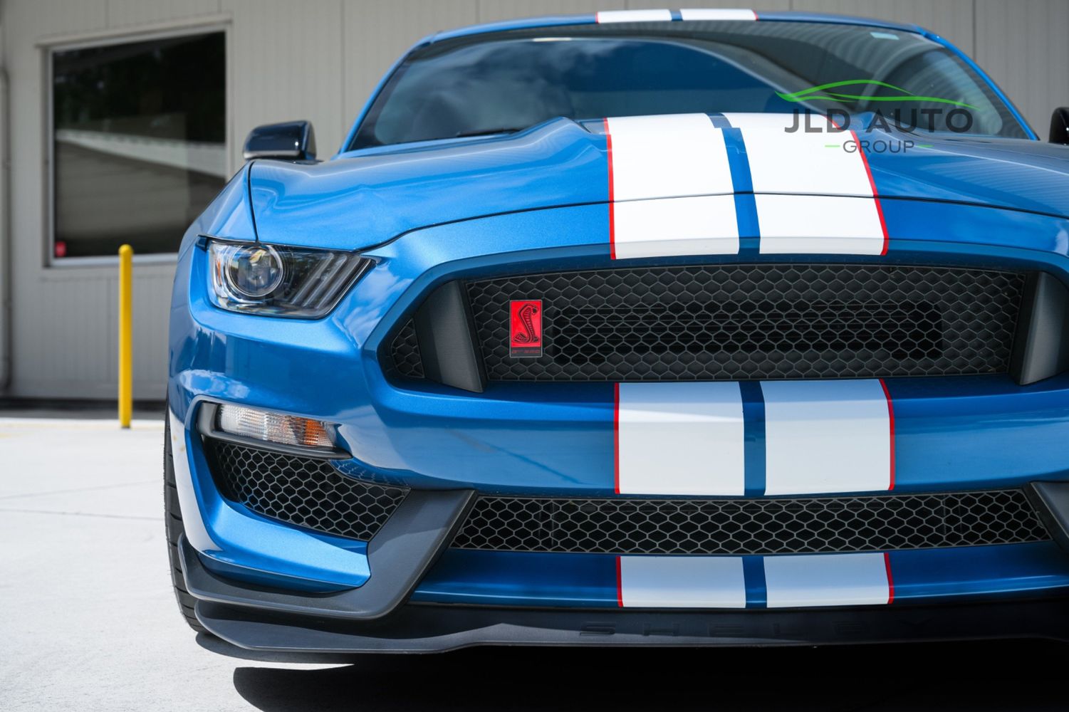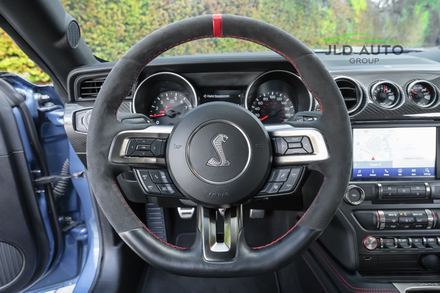Available and up for your consideration at JLD Auto Group is this 2019 Ford Mustang Shelby GT350R! An excellent example, this Shelby has just 8k miles on the odometer, and has just 2 Previous Owners. Finished in 'Ford Performance Blue'' Exterior Paint over an 'Ebony w/ Red Accents' Interior, this GT350R wears a desirable-yet-succinct options list, beginning with the Electronics Package. This grants the GT350R the Premium 12-Speaker B&O Sound System, Blind Spot Monitoring w/ Cross Traffic Alert, and the Voice-Activated Touchscreen Navigation System. Also equipped for the interior is the Exposed Carbon Fiber Instrument Panel, adding a cosmetic touch of sportiness for occupants. Outside, this example sports the optional 'White w/ Red Accent' Vinyl Over-the-Top Stripe, pairing nicely with the red brake calipers and simultaneously providing some contrast from the body color.