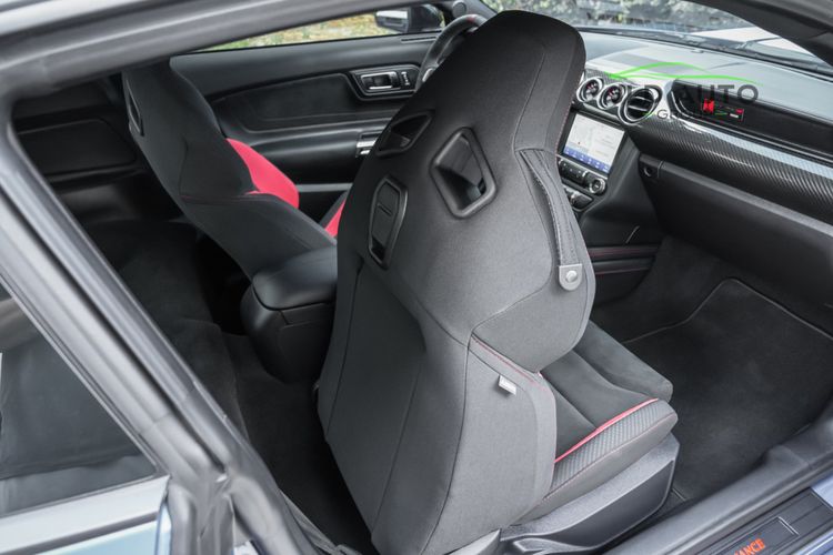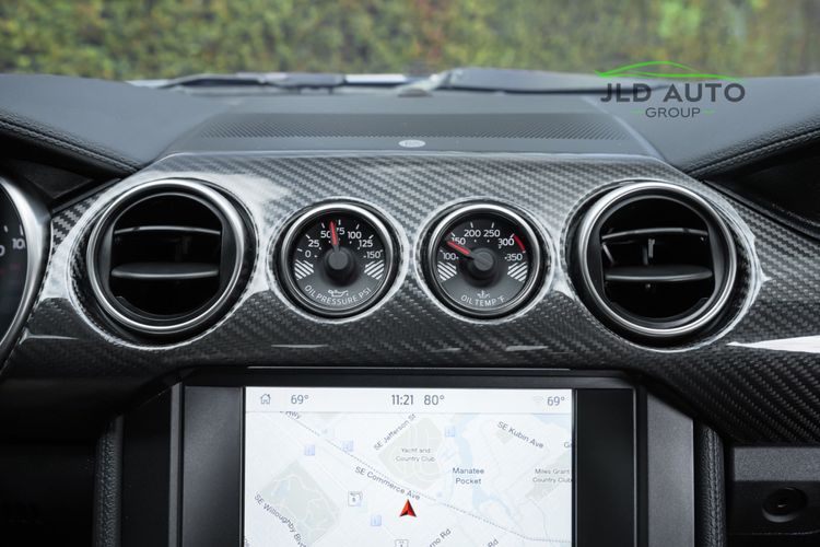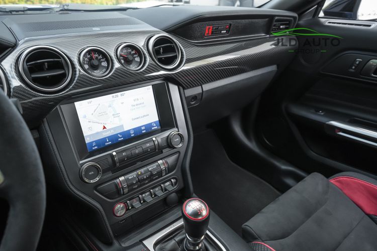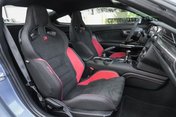 Standard in all GT350Rs is the 5.2L 'Voodoo' naturally-aspirated V8 engine, producing 526hp and 429 lb-ft of torque. In 2019 and later GT350 models, the 'Gen 2' version of this motor is utilized, which provides identical output statistics to the Gen 1 motor but with increased efficiency and operating improvements. Along with a 6-speed manual, the engine and suspension combination in this car is considered to be one of the best offered in a Ford road-going automobile, with plenty of capability both on and off the track. Independent rear suspension, 2-piece ventilated brake rotors, and Brembo High Performance brakes are some of the mechanical goodies offered on the GT350R, in addition to tech items such as Ford's Track Apps, Intelligent Access, and a Rear View Camera. Of course, carbon fiber's presence cannot be overlooked within the GT350R, as beyond the optional carbon fiber instrument panel, the rear wing and wheels are both comprised of the material. Lastly, in the interior, the R's increased track focus can be seen via the manual-controlled Recaro Suede Sport Seats, as well as a rear seat delete for weight savings.