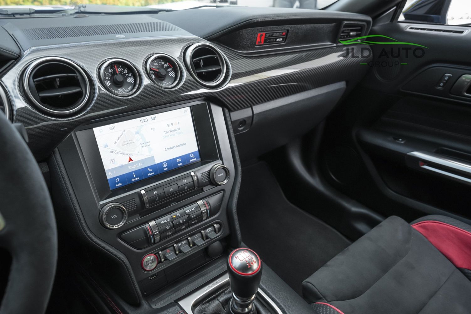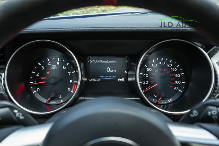 2019 FORD MUSTANG SHELBY GT350R W/ ONLY 8K MILES, ELECTRONICS PACKAGE, EXPOSED CARBON FIBER INSTRUMENT PANEL, WHITE W/ RED ACCENT VINYL OVER-THE-TOP STRIPE